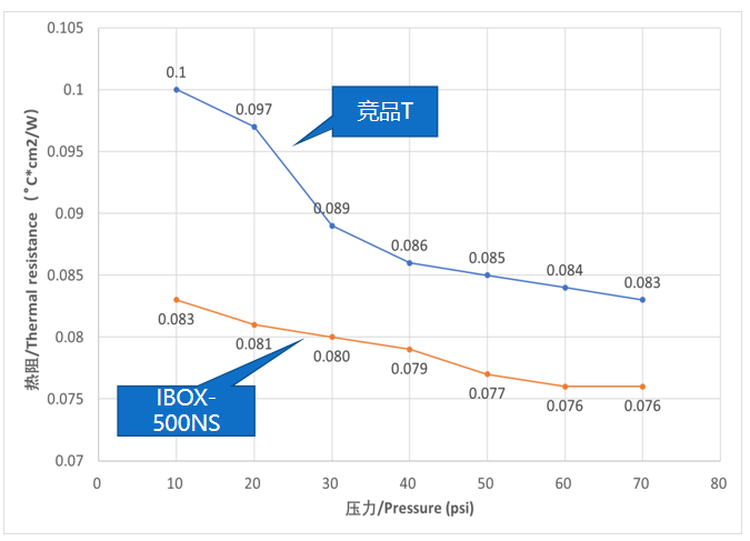 相同條件下,IBOX-500NS的熱阻比競品更低