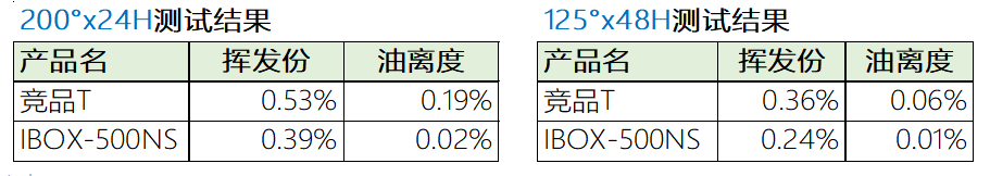 IBOX-500NS與競品T揮發(fā)份和油離度測試: